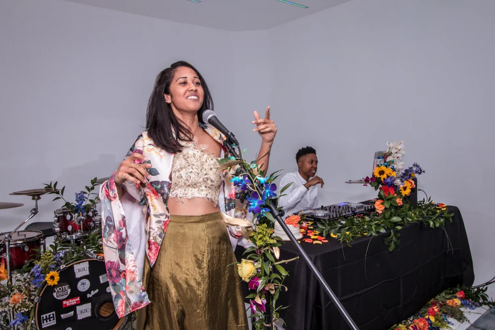 Check out the photos below to see our floral installation. Fresh flowers & greenery adorned the walls and stage area of Gallery 920 along with a curated display of celebration styles by the styling dynamic duo, Amè Style. To add to the magic of the night, were perfectly executed performances by: Emcee James Klynn, DJ Spinelli, Drummer Larren Mellerson, and The Band Shenzi ! SN: I really like to think that aside from good flowers, I also know good music. These performers more than bless the "good music" category. I encourage you to check them out if you're into the best things in life.